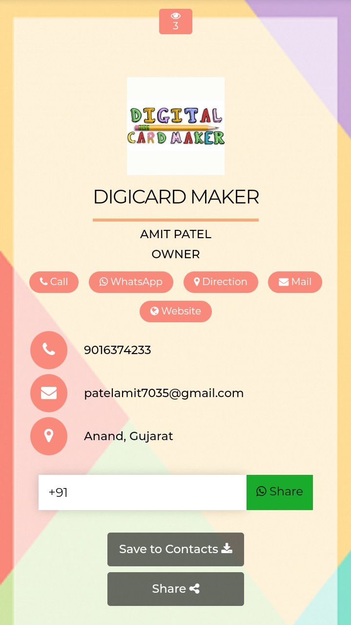 Design your digital visiting card in just 5 minutes - it's easy, elegant and free. Digital Card is always in your pocket, never tears and never runs out. Your Digital Visiting Card can be easily updated with our user-friendly dashboard, so you won't need to re-print a business card again.